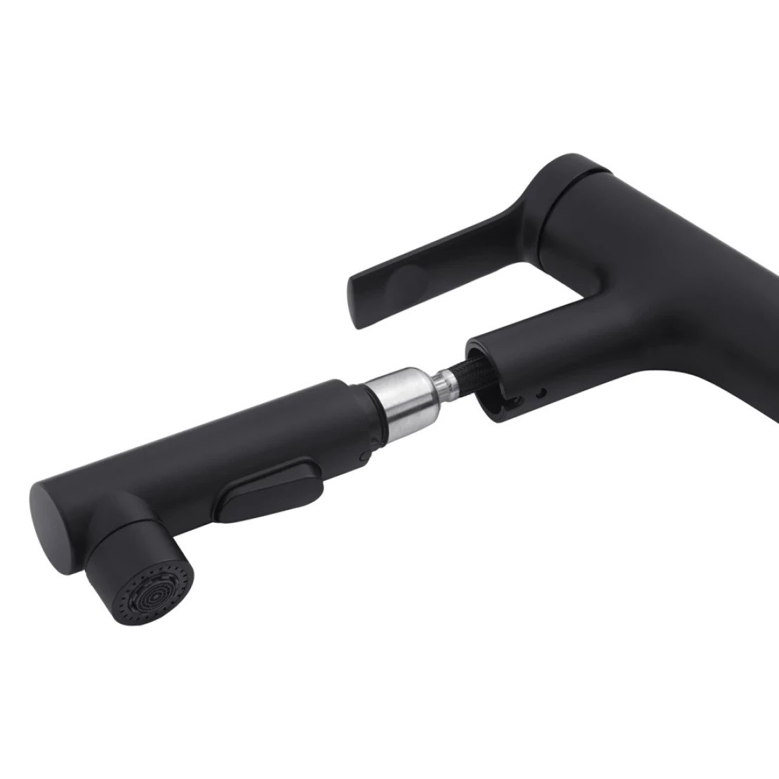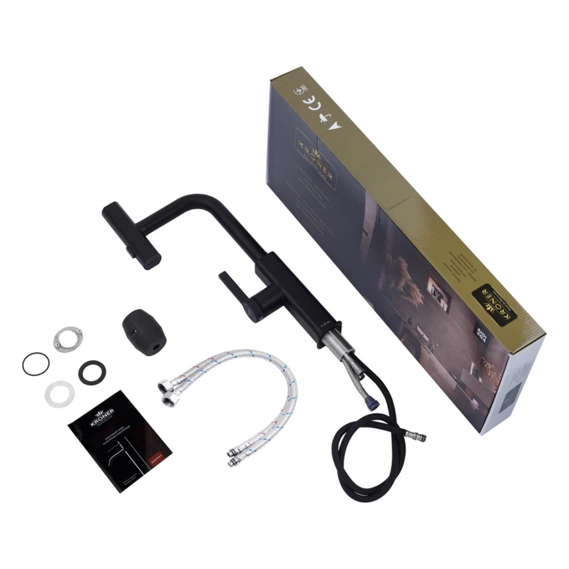 Смеситель для раковины с выдвижным изливом Kroner KRP Edelstahl Klassisch - SCH030-T представляет собой идеальное решение для вашей ванной комнаты, обеспечивая функциональность и стиль в одном устройстве. Изготовленный из высококачественной пищевой нержавеющей стали SUS 304, этот смеситель обеспечивает надежность и долговечность. С его черным матовым цветом, этот смеситель добавляет
