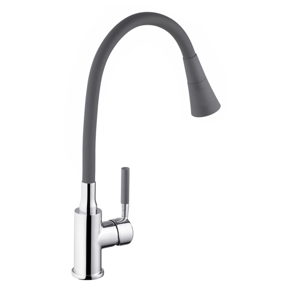 Смеситель для кухни Kroner KRM Kuche - C132GRA - это стильный и функциональный вариант для вашей кухни. Изготовленный из высококачественного силумина с силиконовым изливом, он сочетает в себе прочность и удобство в эксплуатации. Однорычажное управление позволяет легко регулировать температуру и поток воды. Смеситель имеет врезной тип монтажа с креплением при помощи гайки, что