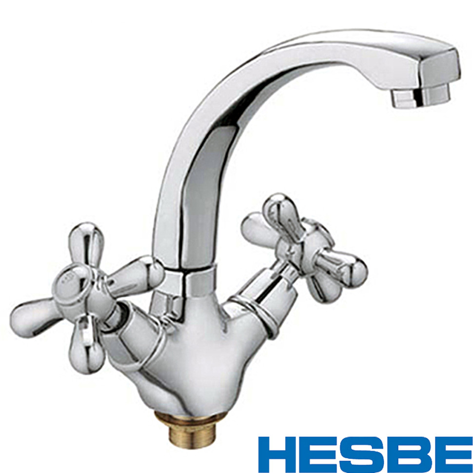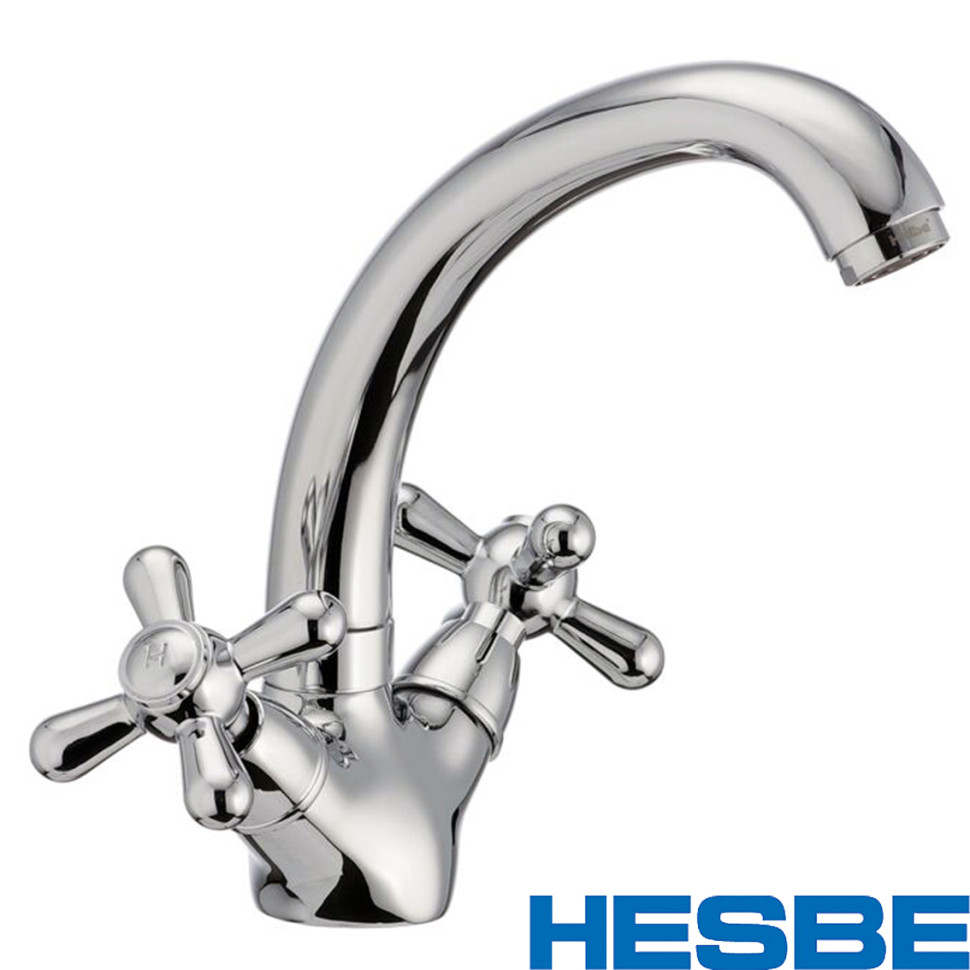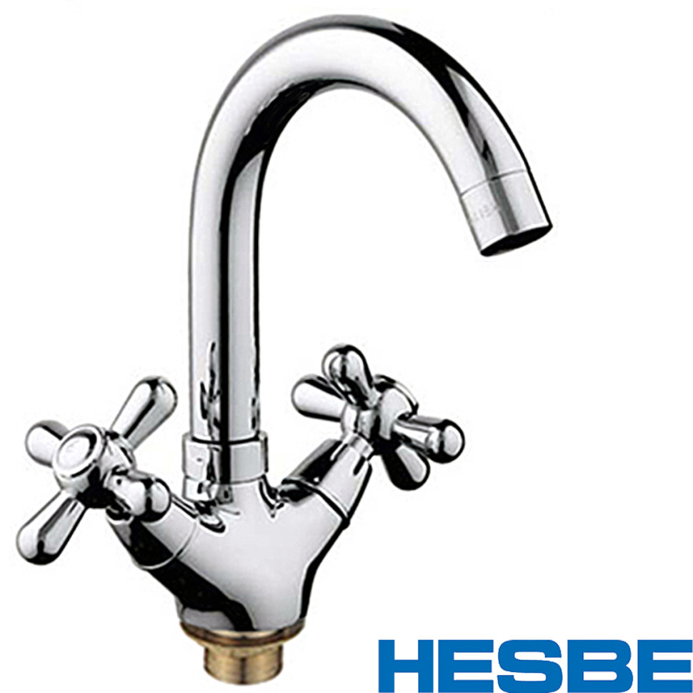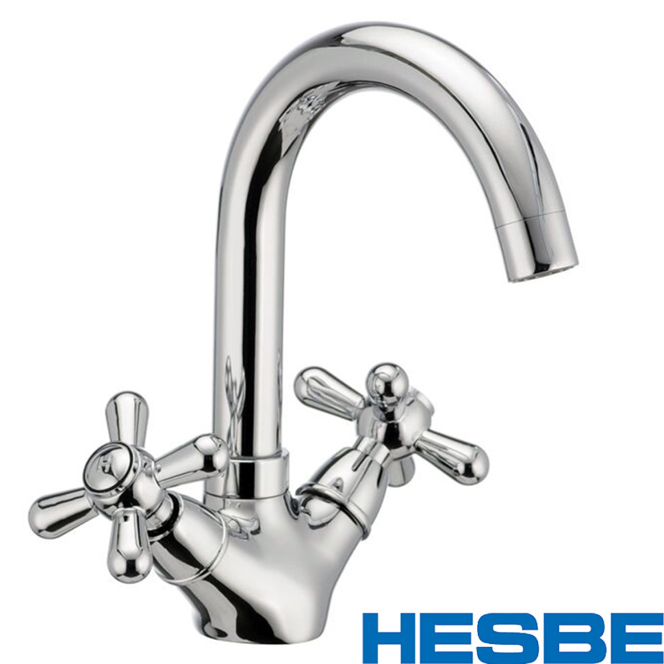 Змішувачі торгової марки HESBE виготовляються на німецькому обладнанні з латуні найвищої якості. Контроль якості продукції HESBE здійснюється фахівцями з Німеччини. У виробництві використовуються іспанські картриджі та німецькі кран-букси. Латунний вентильний (кран-буксовий) змішувач для умивальника з поворотним високим носом, комплектується гнучким підведенням 45 см. Змішувач