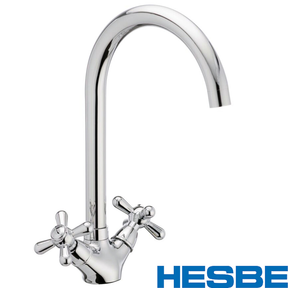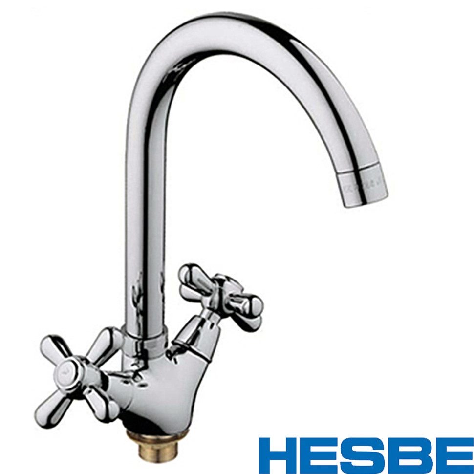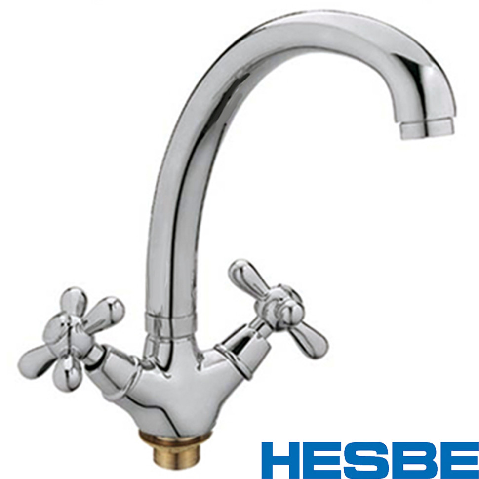 Змішувачі торгової марки HESBE виготовляються на німецькому устаткуванні з латуні найвищої якості. Контроль якості продукції HESBE здійснюється фахівцями з Німеччини. У виробництві використовуються іспанські картриджі та німецькі кран-букси. Латунний вентильний (кран-буксовий) змішувач для кухні з поворотним високим носом, комплектується гнучким підведенням 45 см. Змішувач