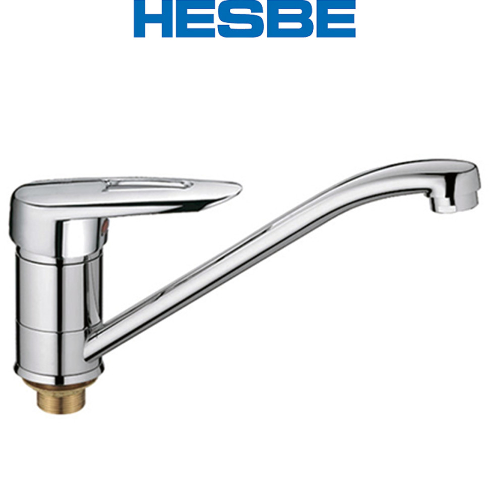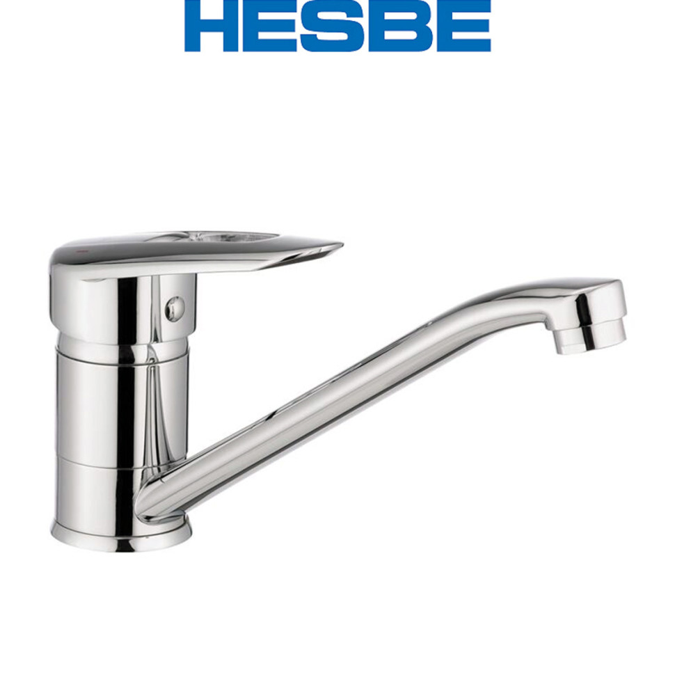 Змішувачі торгової марки HESBE виготовляються на німецькому устаткуванні з латуні найвищої якості. Контроль якості продукції HESBE здійснюється фахівцями з Німеччини. У виробництві використовуються іспанські картриджі та німецькі кран-букси. Латунний картриджний змішувач для кухні з довгим поворотним носом, комплектується гнучким підведенням 45 см, кріплення шпилька. Змішувач