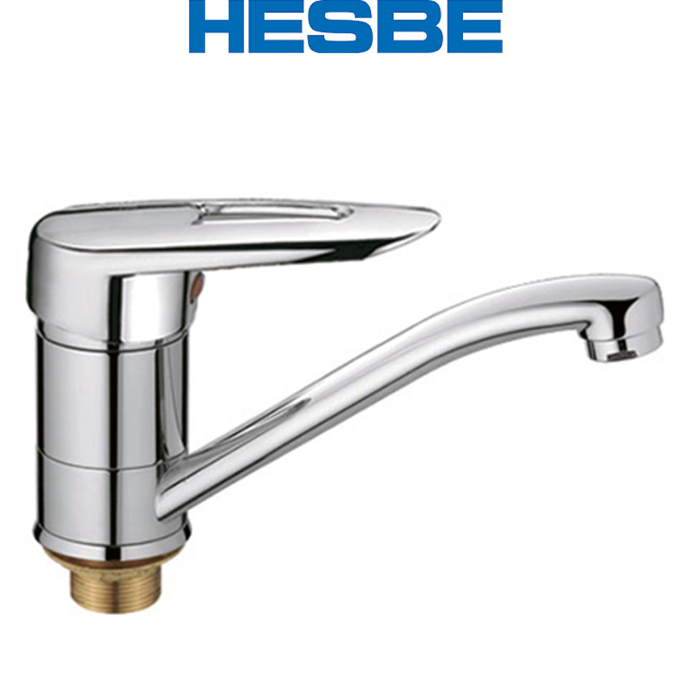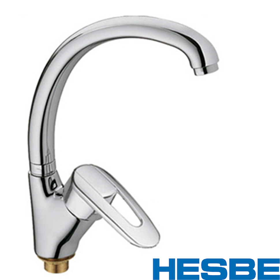 Змішувачі торгової марки HESBE виготовляються на німецькому устаткуванні з латуні найвищої якості. Контроль якості продукції HESBE здійснюється фахівцями з Німеччини. У виробництві використовуються іспанські картриджі та німецькі кран-букси. Латунний змішувач картриджний для кухні з довгим поворотним носом, комплектується гнучким підведенням 45 см, кріплення гайка. Змішувач