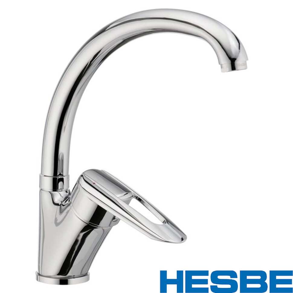 Змішувачі торгової марки HESBE виготовляються на німецькому устаткуванні з латуні найвищої якості. Контроль якості продукції HESBE здійснюється фахівцями з Німеччини. У виробництві використовуються іспанські картриджі та німецькі кран-букси. Латунний картриджний змішувач для кухні з високим поворотним носом, комплектується гнучким підведенням 45 см, кріплення шпилька. Змішувач