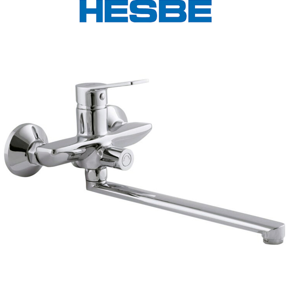 Змішувачі торгової марки HESBE виготовляються на німецькому устаткуванні з латуні найвищої якості. Контроль якості продукції HESBE здійснюється фахівцями з Німеччини. У виробництві використовуються іспанські картриджі та німецькі кран-букси. Латунний картриджний змішувач для ванної кімнати з довгим поворотним носом, з душовим шлангом і лійкою в комплекті. Змішувач призначений