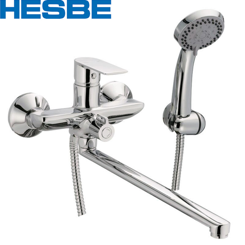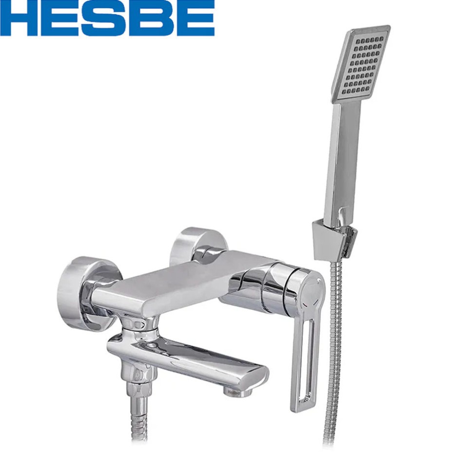 Змішувачі торгової марки HESBE виготовляються на німецькому устаткуванні з латуні найвищої якості. Контроль якості продукції HESBE здійснюється фахівцями з Німеччини. У виробництві використовуються іспанські картриджі та німецькі кран-букси. Латунний картриджний змішувач для ванної литої з коротким носом, з душовим шлангом та лійкою в комплекті. Змішувач призначений для
