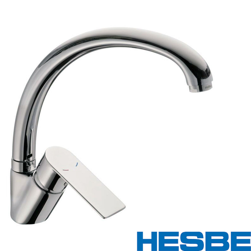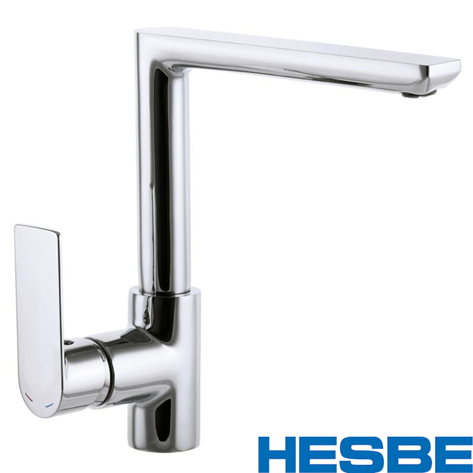 Змішувачі торгової марки HESBE виготовляються на німецькому устаткуванні з латуні найвищої якості. Контроль якості продукції HESBE здійснюється фахівцями з Німеччини. У виробництві використовуються іспанські картриджі та німецькі кран-букси. Латунний картриджний змішувач для кухні з високим поворотним носом, комплектується гнучким підведенням 45 см, кріплення шпилька. Змішувач