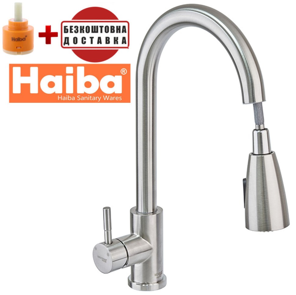 Змішувач для кухні HAIBA Sus (Chr-014-B) з висувною лійкою, з нержавіючої сталі