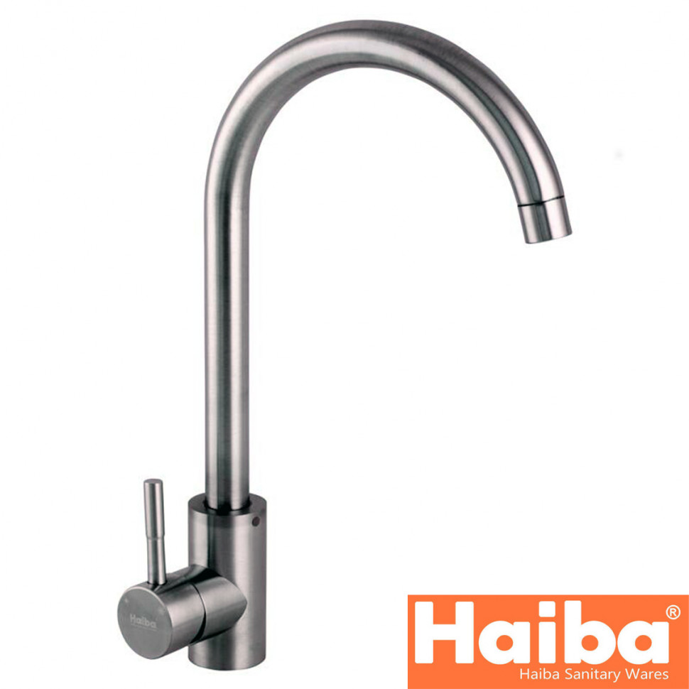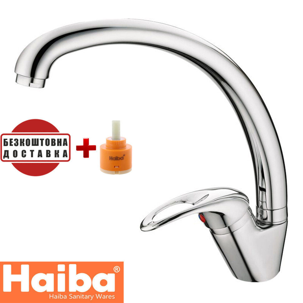 Змішувачі торгової марки HAIBA виготовляються на німецькому обладнанні з латуні найвищої якості. Контроль якості продукції HAIBA здійснюється фахівцями з Німеччини. У виробництві використовуються іспанські картриджі SEDAL та німецькі кран-букси. Латунний картриджний змішувач для кухні з високим поворотним носом, комплектується гнучким підведенням 45 см, кріплення шпилька.