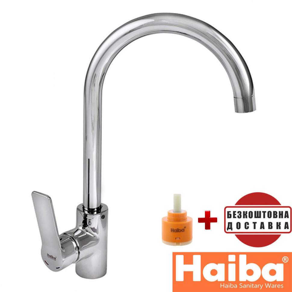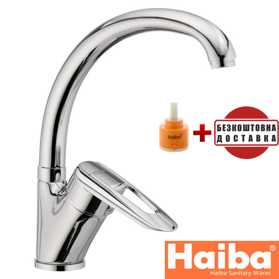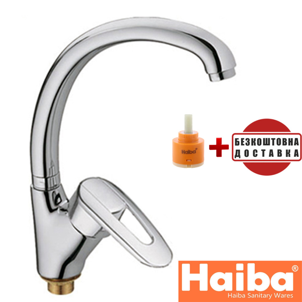 Смесители торговой марки HAIBA производятся на немецком оборудовании из латуни высшего качества. Контроль качества продукции HAIBA производится специалистами из Германии. В производстве используются испанские картриджи SEDAL и немецкие кран-буксы. Латунный картриджный смеситель для кухни с высоким поворотным носом, комплектуется гибкой подводкой 45 см, крепление шпилька.