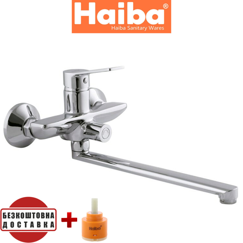 Смесители торговой марки HAIBA производятся на немецком оборудовании из латуни высшего качества. Контроль качества продукции HAIBA производится специалистами из Германии. В производстве используются испанские картриджи SEDAL и немецкие кран-буксы. Латунный картриджный смеситель для ванной с длинным поворотным носом, с душевым шлангом и лейкой в комплекте. Смеситель