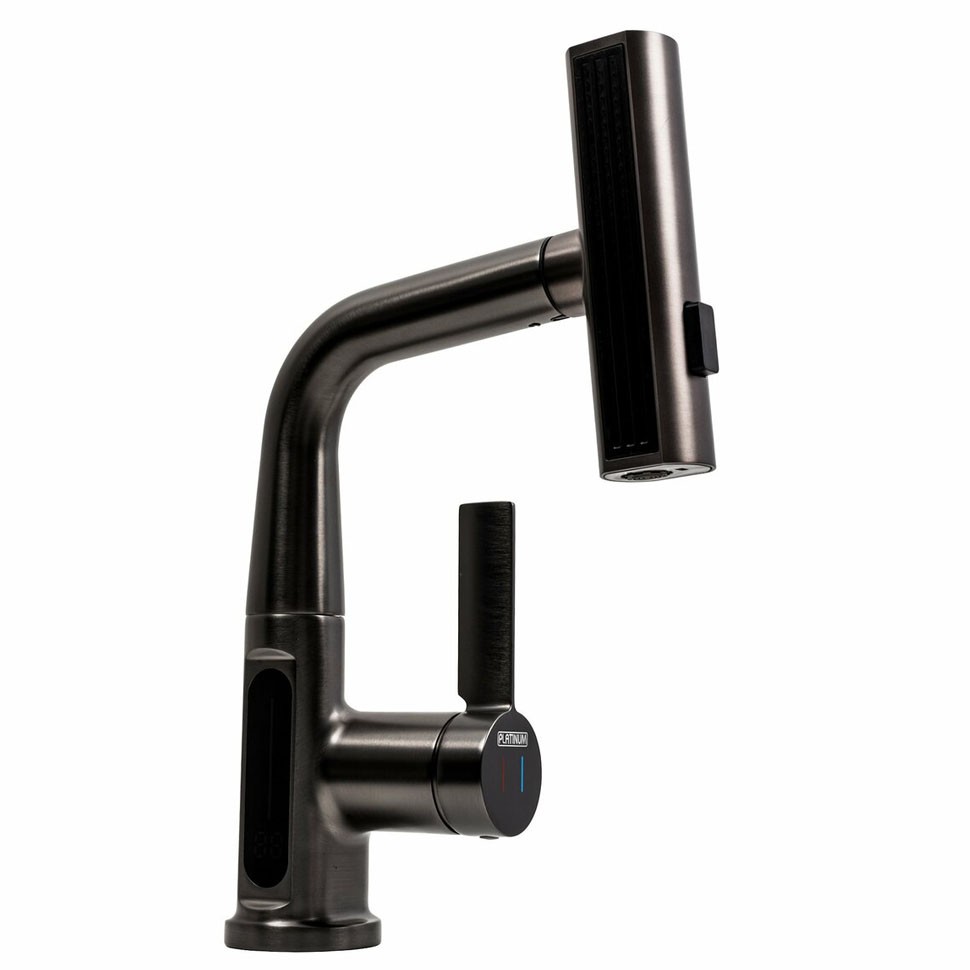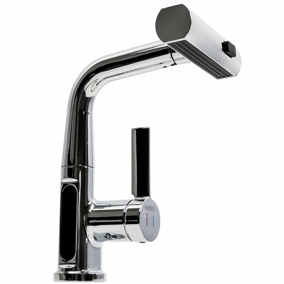 Смеситель для умывальника Platinex A239 с индикатором температуры и выдвижным изливом, Чёрный