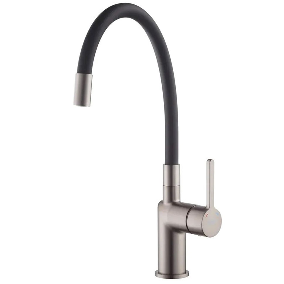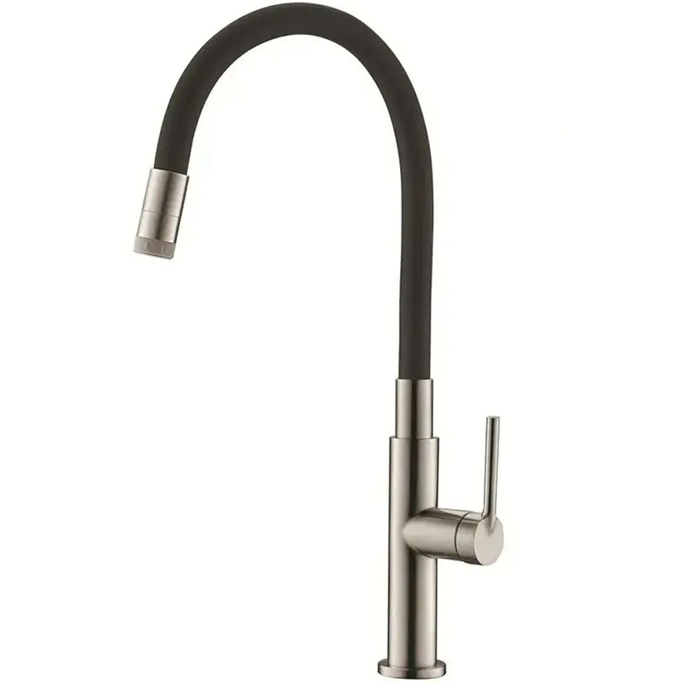 Смеситель для кухни Ухо Platinex FR56 с изливом пружина и чёрным силиконовым изливом