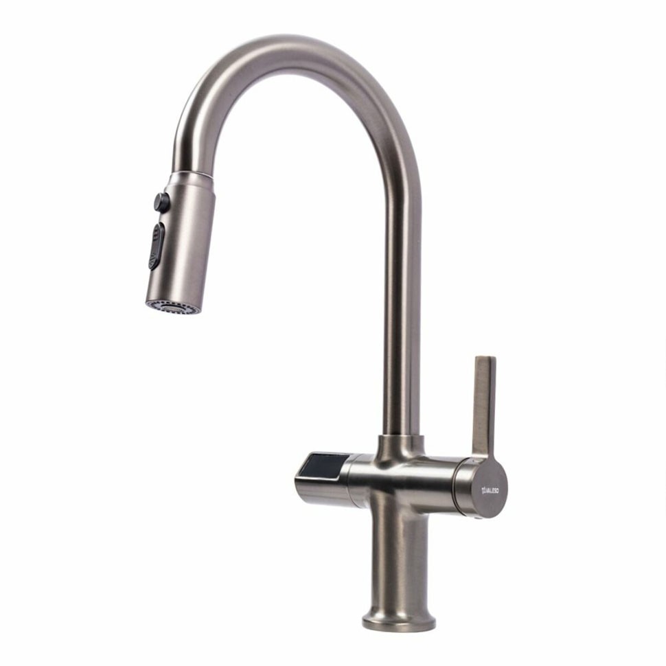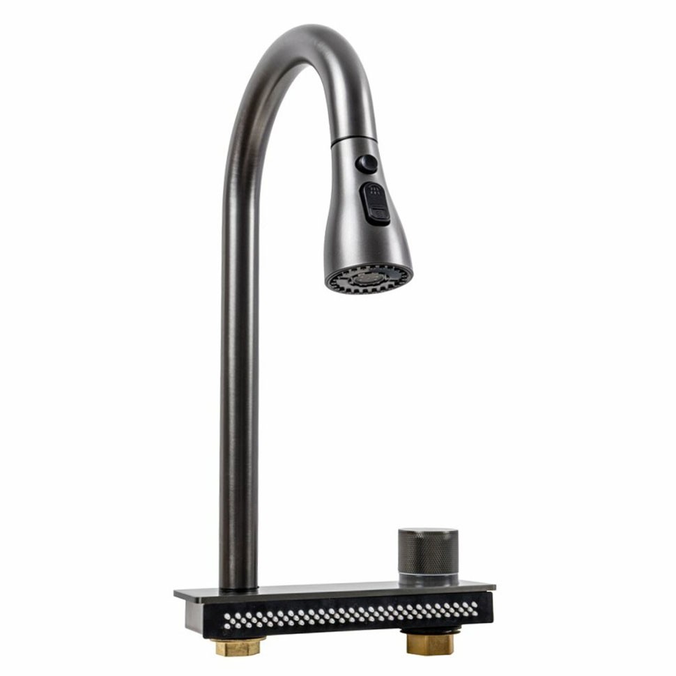Смеситель для кухни Platinex FC-WF2 Водопад в цвете графит — это стильное и многофункциональное решение, сочетающее оригинальный дизайн, удобство и расширенные возможности для ежедневного использования на кухне. Модель выполнена из прочной латуни с графитовым покрытием, устойчивым к царапинам, коррозии, влаге и бытовой химии, благодаря чему сохраняет эстетичный вид даже при