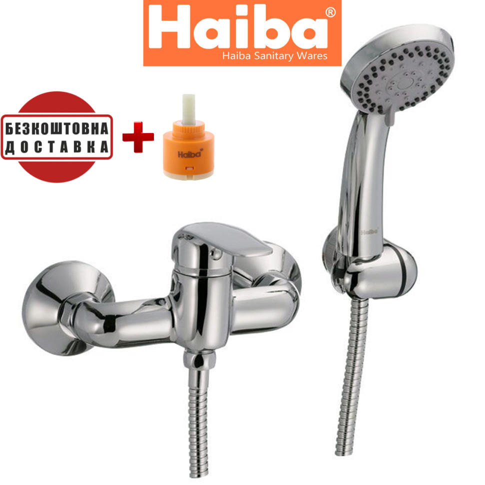 Смесители торговой марки HAIBA производятся на немецком оборудовании из латуни высшего качества. Контроль качества продукции HAIBA производится специалистами из Германии. В производстве используются испанские картриджи SEDAL и немецкие кран-буксы. Латунный картриджный смеситель для душевой кабины: литой с душевым шлангом и лейкой в комплекте. Смеситель предназначен для