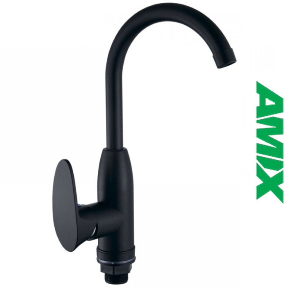Змішувач для кухні из термопластика AMIX CEZAR-011-B SET Matte black (з підведенням), Чорний мат