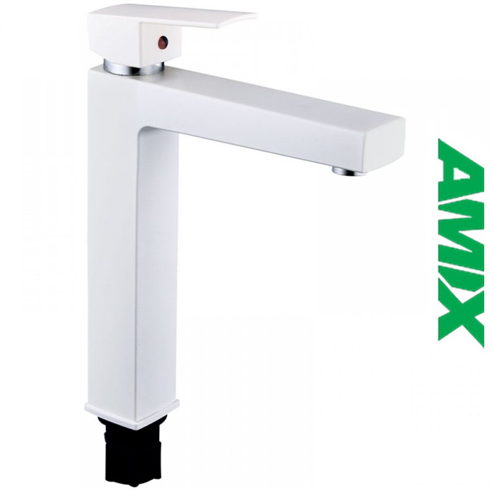 Змішувач для умивальника из термопластика AMIX KUBUS-001 HIGH SET White (з підводом), Білий