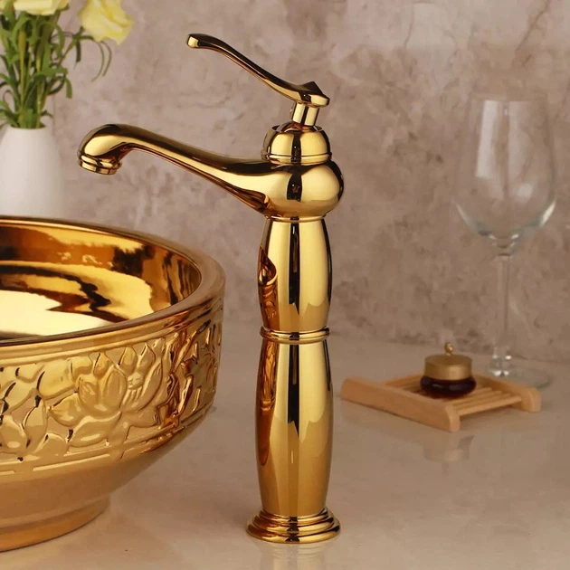 Змішувач для умивальника високий Haiba KUBUS 001 (HIGH) BRUSHED GOLD (HB9623)