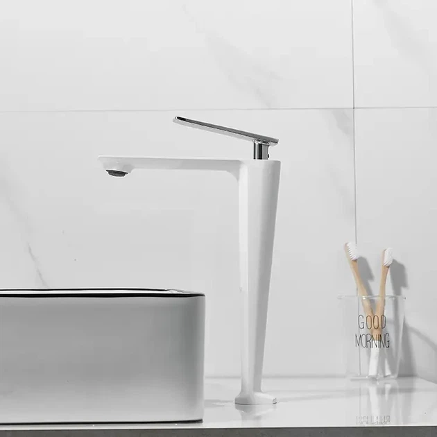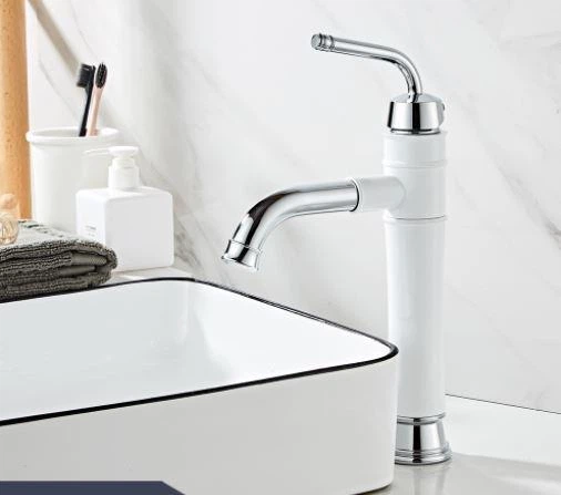 Змішувач для умивальника одноважільний, кран для раковини латунь WanFan для ванної кімнати Білий-Хром 4567161