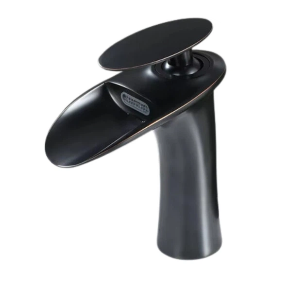 Змішувач дизайнерський для умивальника з чорної латуні з водоспадом, змішувач для раковини з підсвічуванням