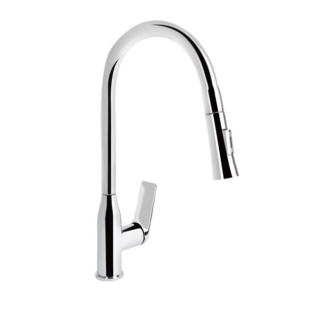Змішувач для кухні латунний U-подібний з висувним виливом Qtap Vlasta Chrome Хром глянець
