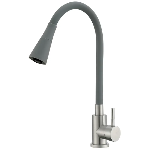 Змішувач для кухні MIXXUS SUS-011-T REFL.GRAY із силіконовим виливом з нерж. сталі SUS304, вилив сірий