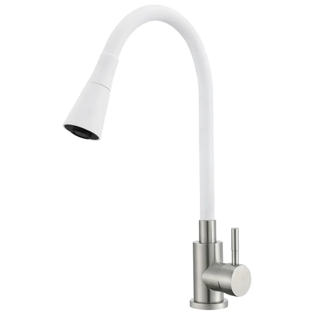 Змішувач для кухні MIXXUS SUS-011-T REFL.WHITE із силіконовим виливом із нерж. стали SUS304, вилив би