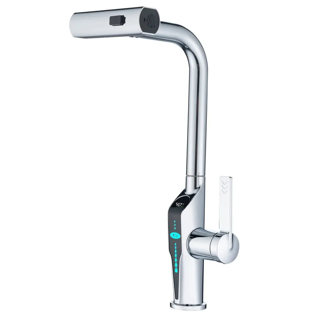 Змішувач для кухні з висувною лійкою Mixxus FALCON 014, 4 режими, з індикатором температури ( MI6838 ) 29893