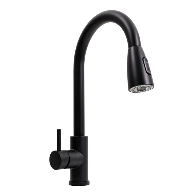 Змішувач для кухні одноважільний з гнучким виливом CHAMPION Eza чорний нержавіюча сталь MX9555