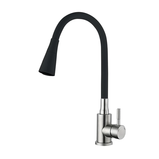 Змішувач для кухні WEZER EKO4Y-01B, гнучкий дворежимний вилив, нержавіюча сталь, сатин/чорний