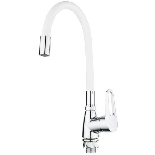 Змішувач для кухні одноважільний з гнучким виливом MIXXUS Elba білий метал MI6310