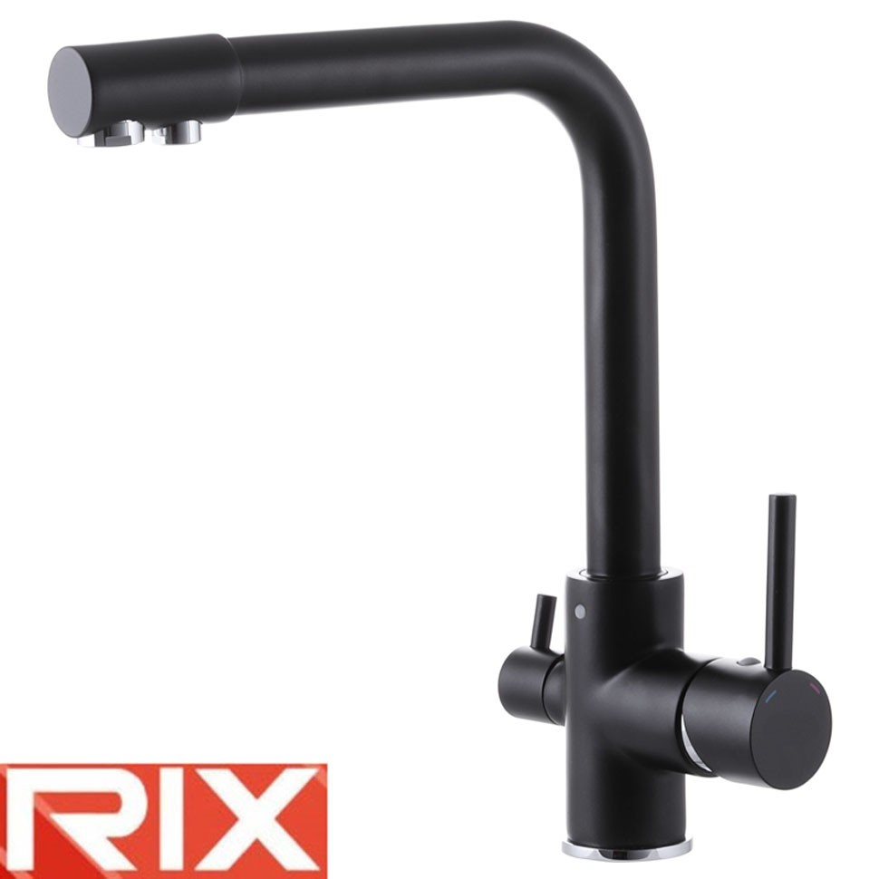 Смеситель для кухни Ухо Rix LR4055B-3 с выходом для питьевой воды, Чёрный мат