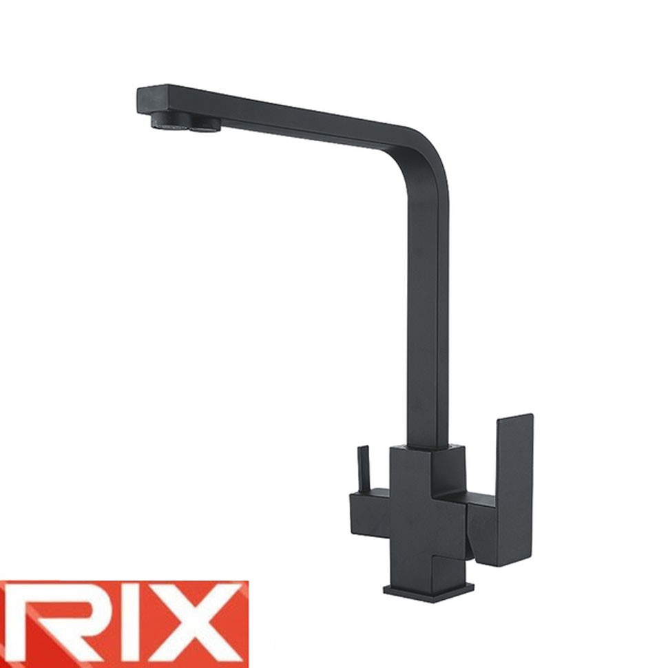 Смеситель для кухни Ухо Rix KUB (Chr-021) BLACK с выходом для питьевой воды, SUS304 из нержавеющей стали