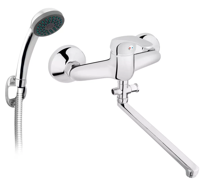 Змішувач-кран для ванни FERRO Basic із виливом 350 мм та душовим комплектом (BBC55A)
