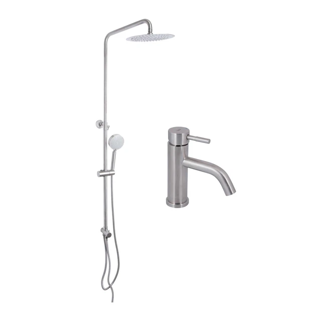 Набір: Lidz Aria 0011F Змішувач для раковини (k35) Nickel + Lidz Aria 1120 Душова стійка універсальна на два споживача