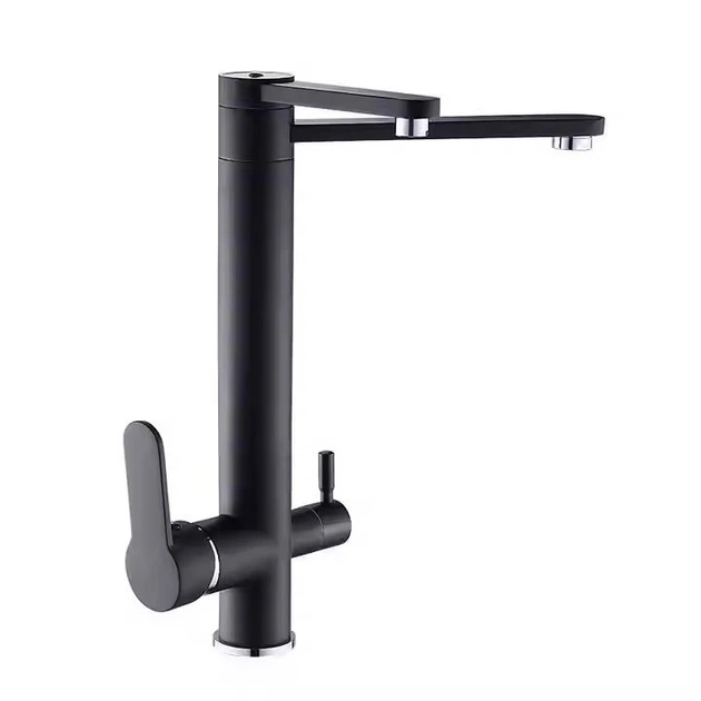 Змішувач для кухні з підключенням фільтрованої води WanFan , двоважільний Чорний