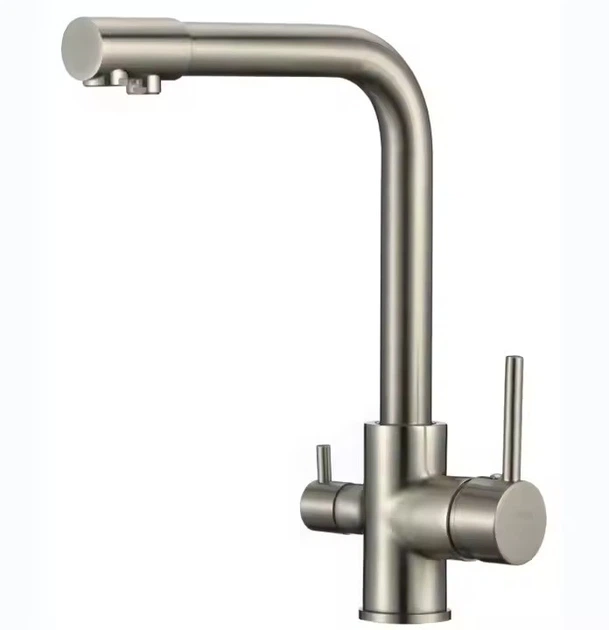 Змішувач для кухні з підключенням до фільтру латунний, з матовим нікелем з бічними важелями, матовий нікель.