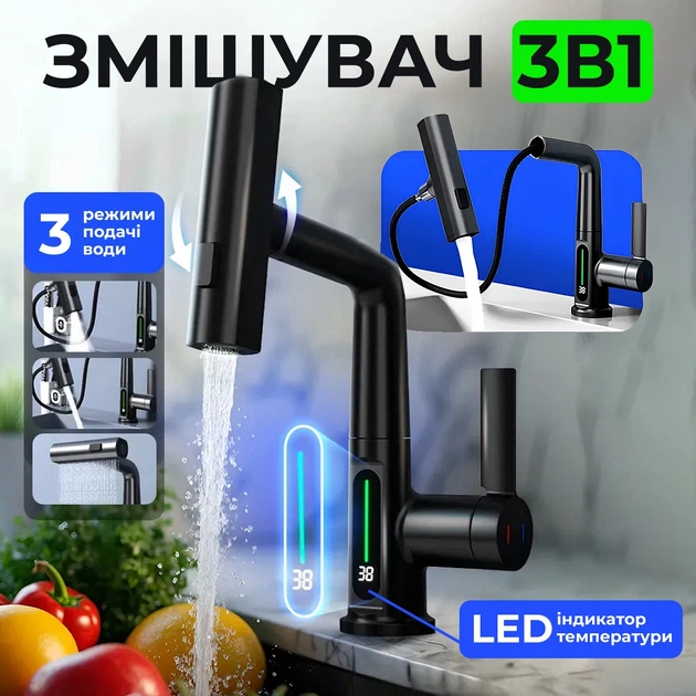 Змішувач для раковини з індикатором температури кран на кухню змішувач для умивальника Pavlysh розумний змішувач Vd-u7
