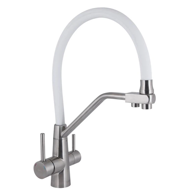 Кухонний змішувач LIDZ Aria 020F3 із гнучким виливом із підключенням для питної води White/Nickel