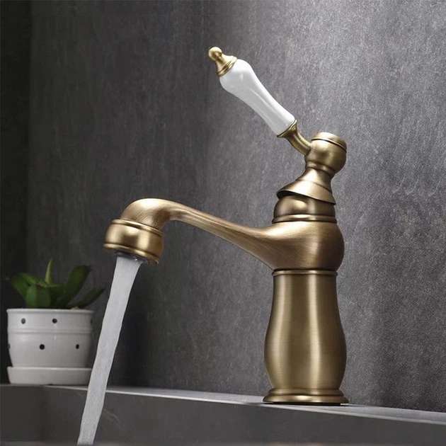 Змішувач кран одноважільний для раковини у стилі ретро з керамічною вставкою (27895)
