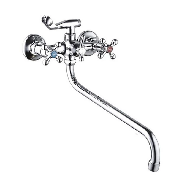 Змішувач для ванни Weze VRL721-12, хром, двовентильний, довгий поворотний круглий вилив (сплав)