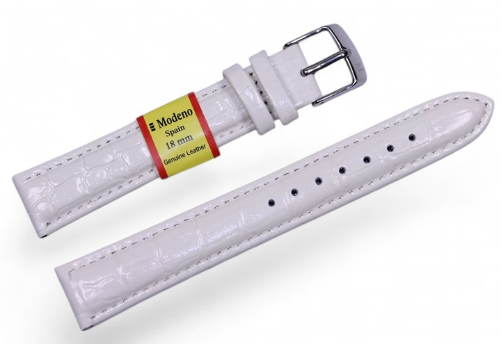 Шкіряний ремінець для годинника MODENO Spaine 18 мм (MOD18W3-26) білий з тисненням, ремінець із натуральної шкіри зі сталево