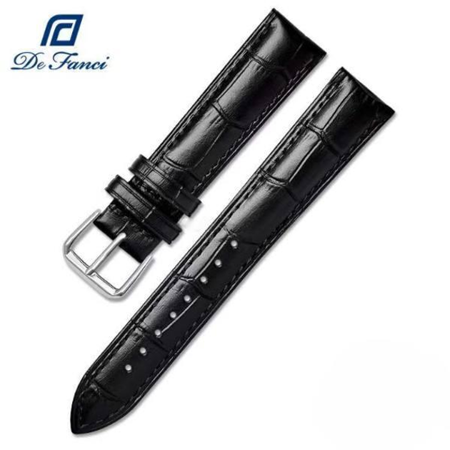 Шкіряний ремінець для годинників 16 мм чорний De Fanci Premium