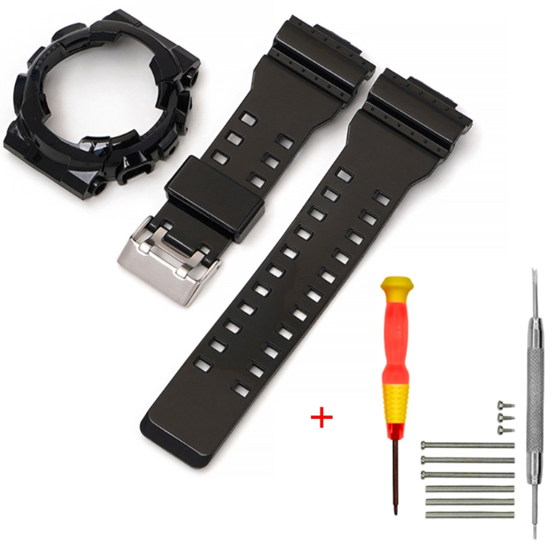 Ремінець + безель (рант) для Casio G-Shock GA-100 Black-Glossy SI Watch strap