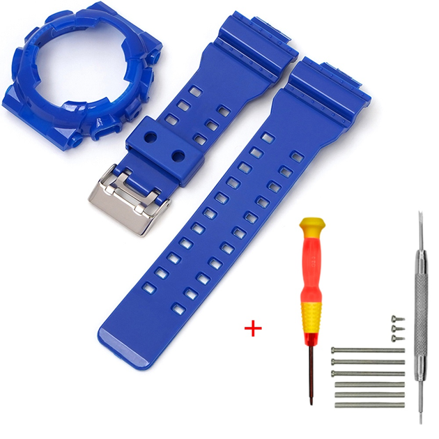Ремінець + безель (рант) для Casio G-Shock GA-100 Dark Blue-Glossy SI Watch strap