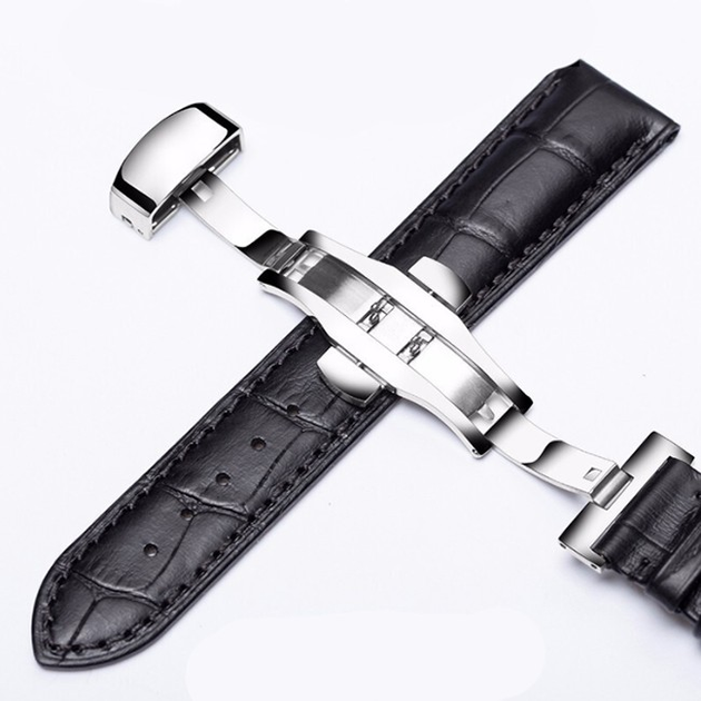 Ремінець для годинника з натуральної шкіри зі сріблястою застібкою GENUINE LEATHER 22 мм чорний