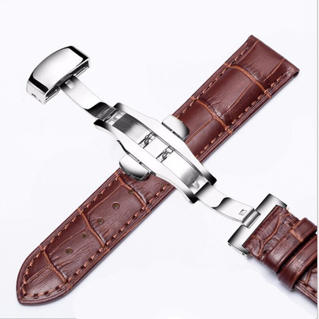 Ремінець для годинника з натуральної шкіри з сріблястою застібкою UTHAI 22 мм коричневий