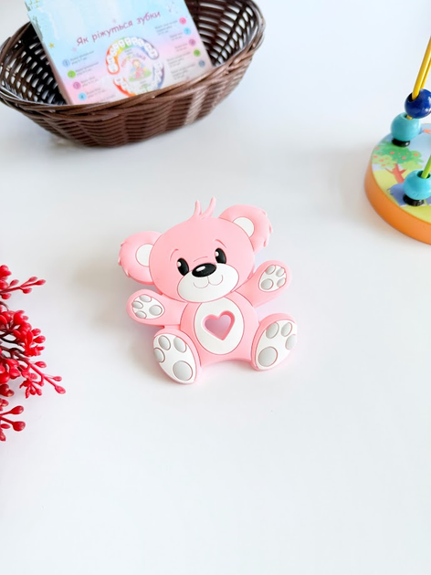 Силіконовий прорізувач, гризунець ведмедик, рожевий