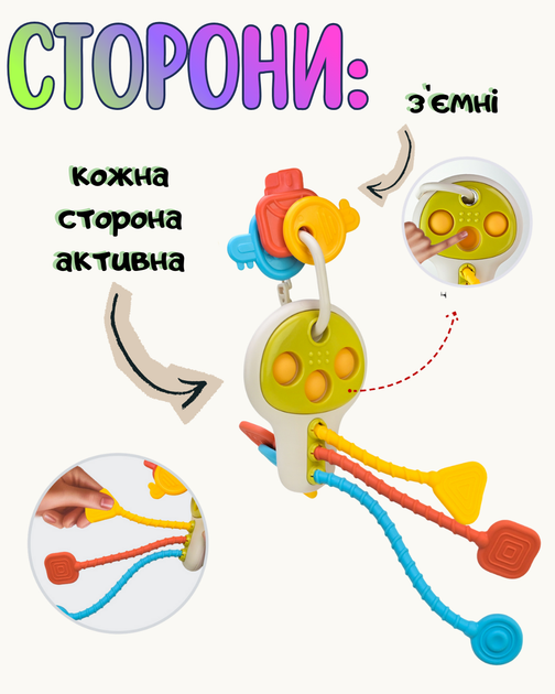 Брязкальце прорізувач дитячий тактильна розвиваюча іграшка брелок з рухомими ключиками елементами для моторики та сенсорики