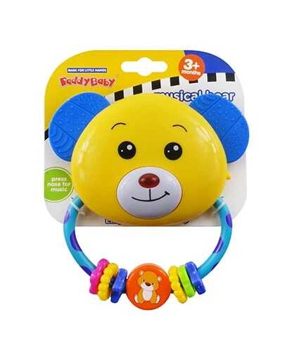 Брязкальце 0598 ведмедик, музичний чіп, прорізувач, підсвітка, гра з кульками, на листі