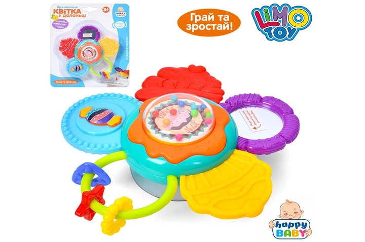 Брязкальце 0884 квітка, 15см, на присосці, прорізувач, дзеркальце, 20-24-5,5см